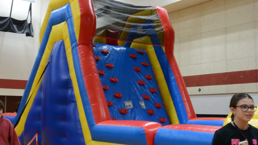 Before the activities, there was a pep rally in which the band played a song that the cheer squad danced to, then the cheer squad had a cheer, and finally the dance team performed a dance on stage. The gym had a bouncy obstacle course and a rope climb; there was also music playing in the background. Right outside of the gym, Builder’s Club did a no-tobacco promotion with a poster to sign your name on. In the cafeteria, there was a dance floor with music playing, and popsicles were outside the cafeteria in the hallway. The auditorium had Dr. Minnick talking about PBIS points and rules.